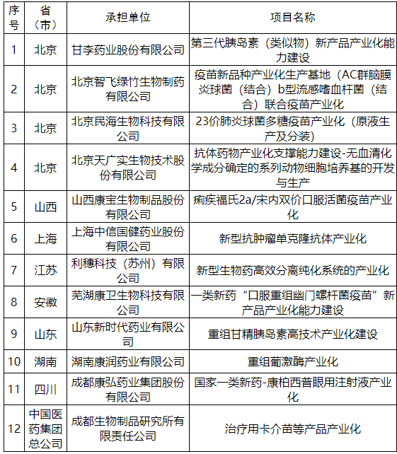 2014年战略性新兴产业发展专项(蛋白类生物药和疫苗发展专项) 项目公示